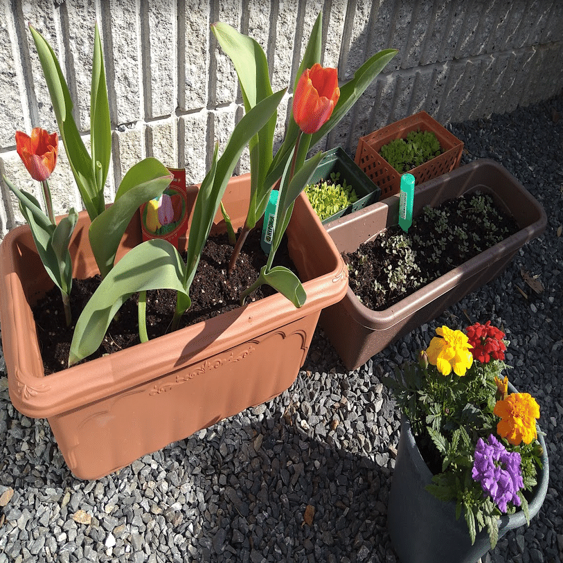 チューリップの次は、寄せ植えをやってみました。