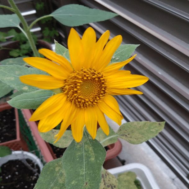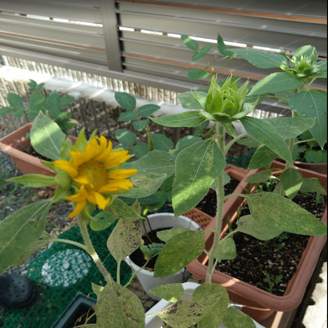 DAISOでミニ咲ひまわりの種を購入しました。(購入時期はあまり覚えていませんが、確か7月末ぐらい?)植えてみたところ、3枝ほど育ちました。