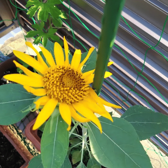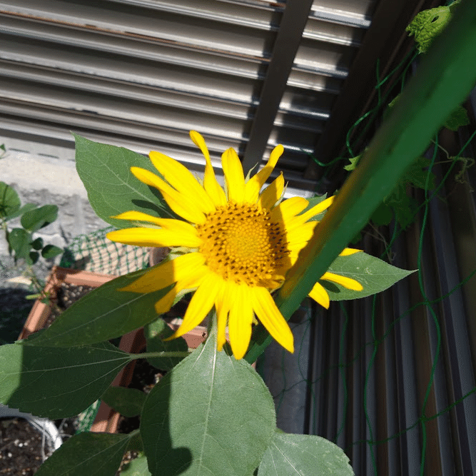 土が少ないのと、植木鉢が浅くて3週間ぐらいしか持ちませんでした。最後まで頑張ってくれたひまわりは、途中で別の鉢に植え替えました。そのおかげか、植え替えなかった2枝よりも明らかに茎が太く、元気に育ってくれました。2枝は枯れてしまったので、種を取ってみようと思っています。